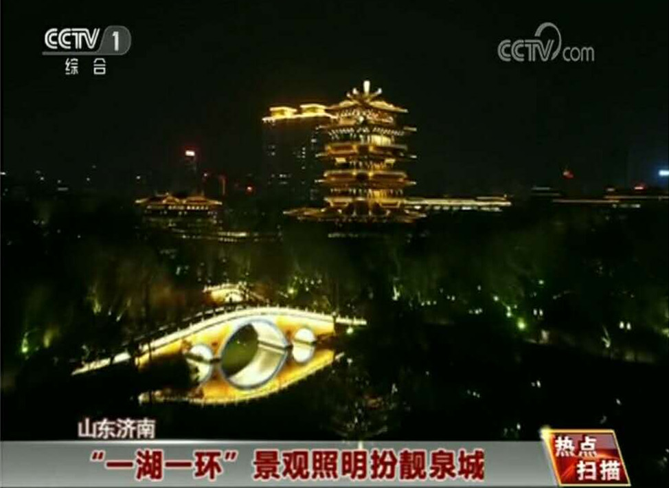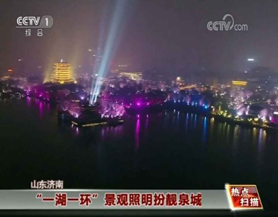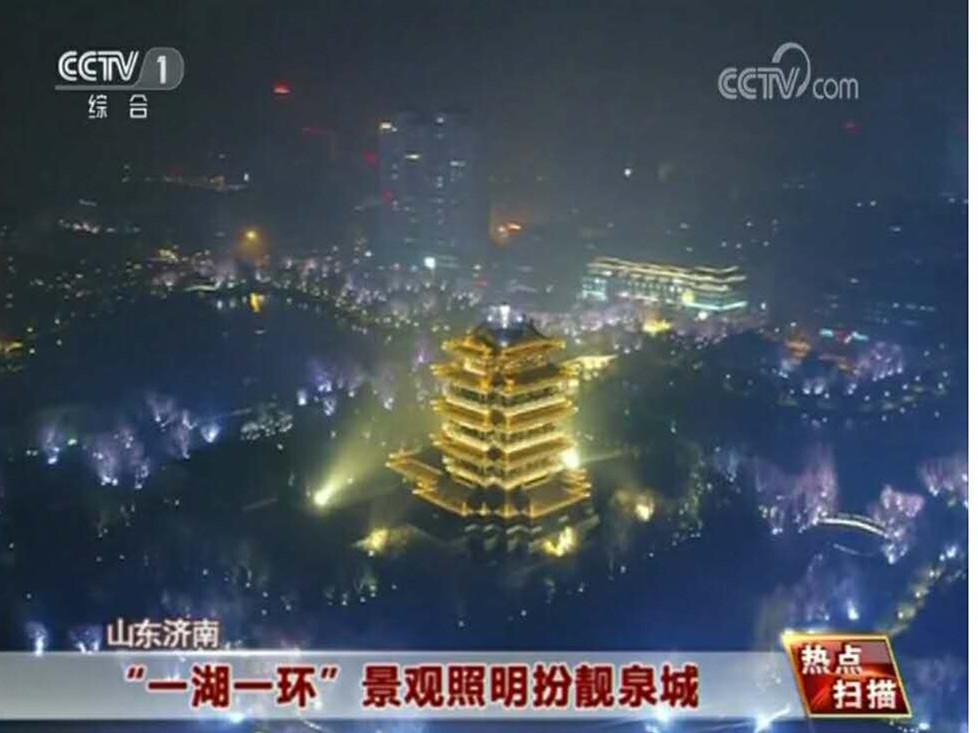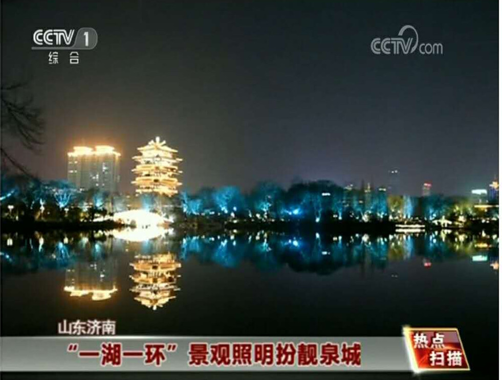 2月3日央視《晚間新聞》播出《“一湖一環(huán)”景觀(guān)照明扮靚泉城》,泉城濟南“一湖一環(huán)”景觀(guān)亮相全國。