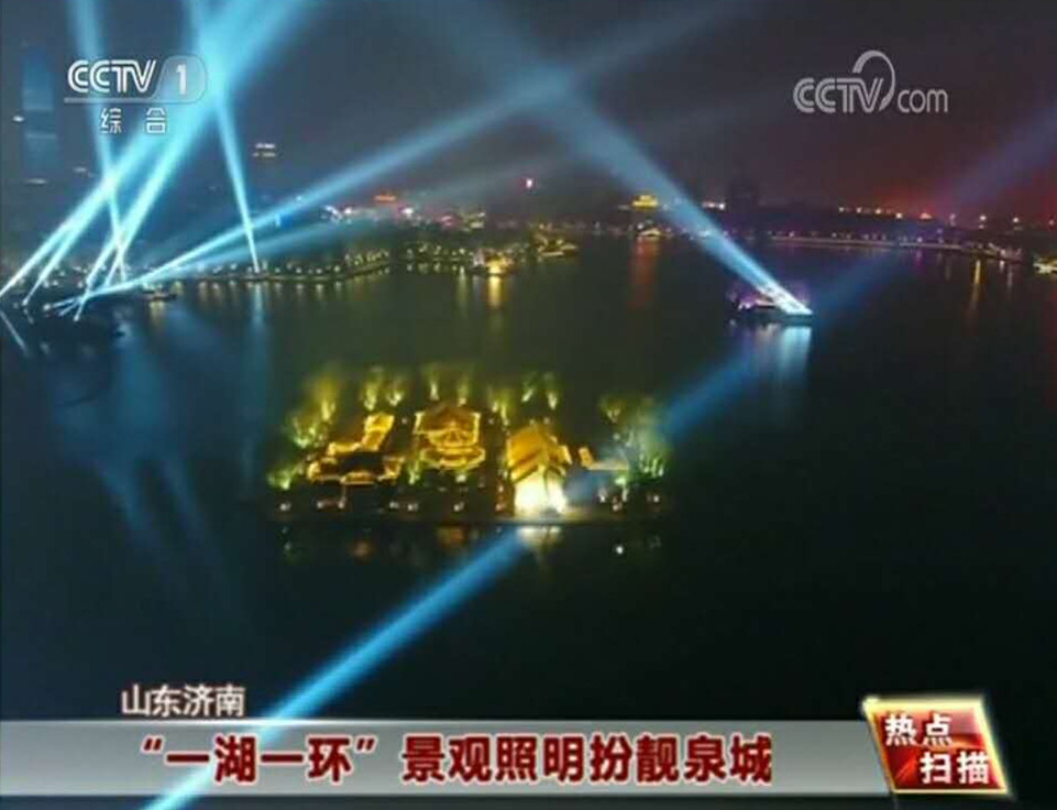 央視在報道中說(shuō):泉城開(kāi)燈,共賞夜景,山東濟南的“一湖一環(huán)”景觀(guān)照明項目近日試運行,市民以后每晚都能沿途觀(guān)賞燈光美景。