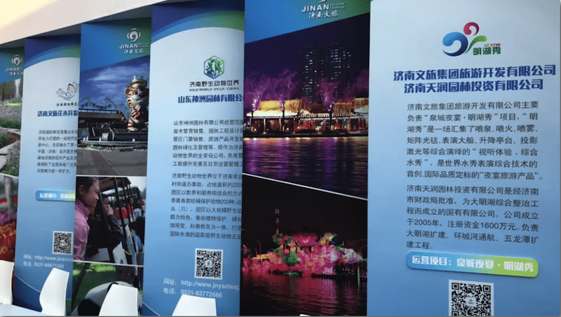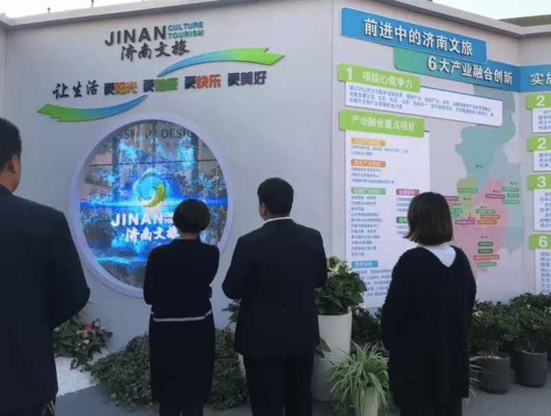 集團展位位于文化產(chǎn)業(yè)綜合展示區,臨近中央舞臺,是人流量最大的核心區域。展區面積約150平米,濟南素有“瀟灑似江南”的美譽(yù),設計以中國傳統園林的元素結合現代簡(jiǎn)約的設計手段,營(yíng)造一個(gè)具有古典氣息、文化氣質(zhì)、自然理念的展示空間,展示濟南文旅發(fā)展集團及各子公司的靚麗名片。同時(shí)采用平昌冬奧會(huì )“北京八分鐘”同款Led透明顯示屏,結合展廳圓形景窗,形成炫彩3D的立體效果,展示集團Logo形象,引來(lái)無(wú)數市民及游客駐足觀(guān)賞。
