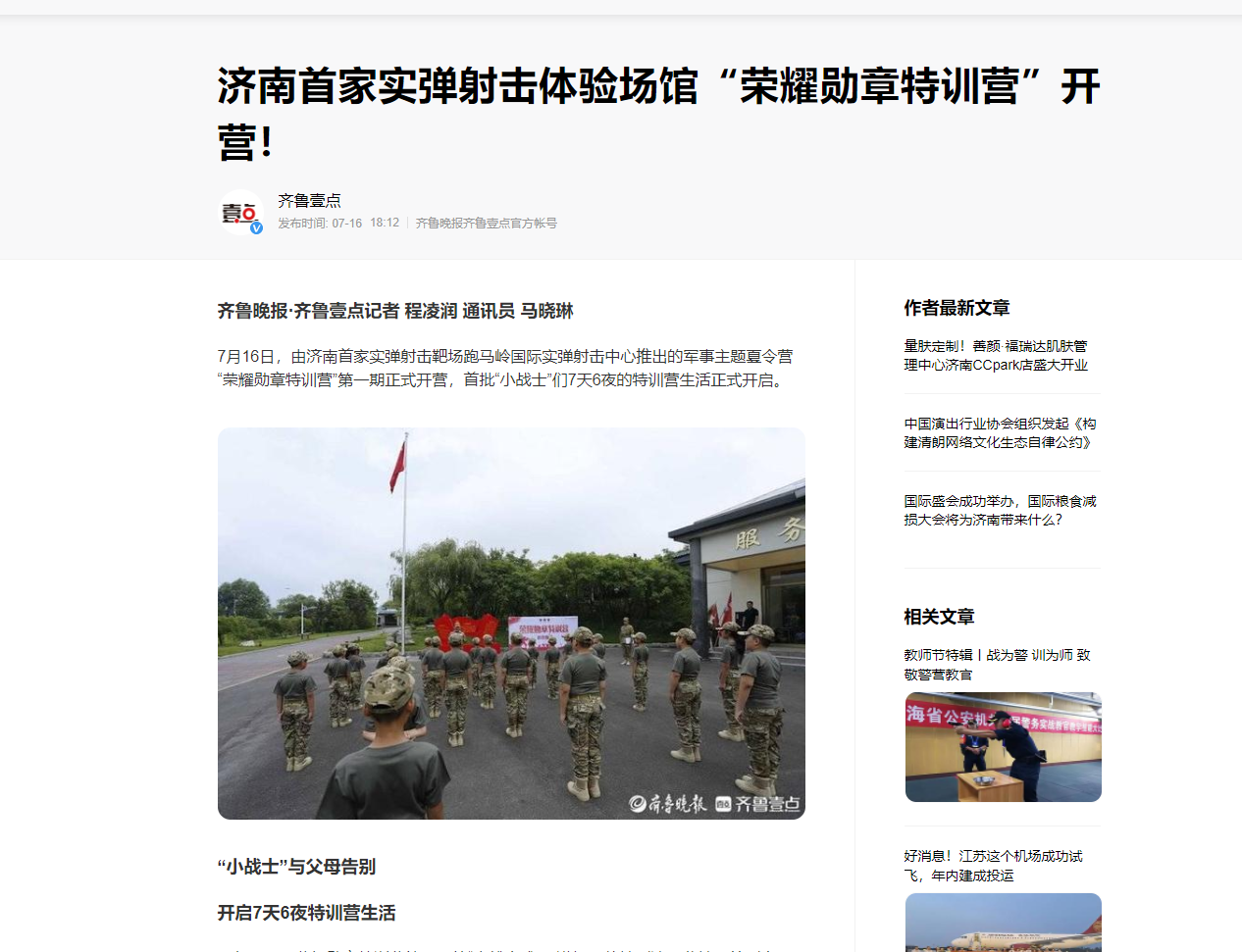 7月16日,由跑馬嶺國際實(shí)彈射擊中心推出的軍事主題夏令營(yíng)“榮耀勛章特訓營(yíng)”第一期正式開(kāi)營(yíng)。濟南文旅投資集團相關(guān)領(lǐng)導及省內10余家媒體出席開(kāi)營(yíng)儀式。