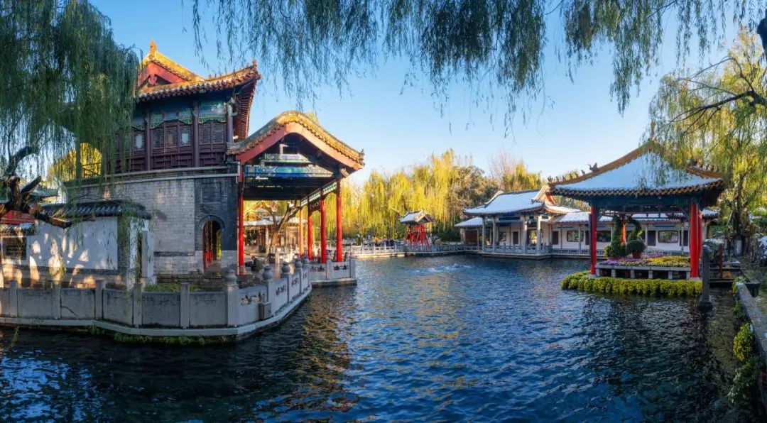 如今,走進(jìn)趵突泉公園,仿佛走進(jìn)了江南古典園林,園內泉池幽深,波光粼粼,亭臺樓閣雕梁畫(huà)棟,錯落有致,濼源堂、娥英祠、望鶴亭、觀(guān)瀾亭、尚志堂、滄園、白雪樓、李苦禪紀念館、王雪濤紀念館等名勝古跡不勝枚舉,堪稱(chēng)最具南北方園林藝術(shù)特點(diǎn)的山水園林之一。