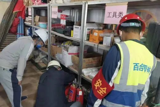 百合園林集團工作人員檢查防汛物資儲備情況,確保齊全可用