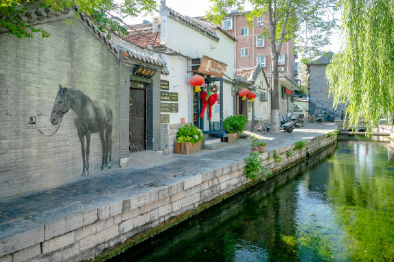 街道一邊是青磚紅瓦的老式建筑,一邊是清澈見(jiàn)底的泉水,街上隨處可見(jiàn)文藝小館、商鋪和人家,白墻灰瓦的民居中不時(shí)傳來(lái)地道的濟南話(huà),讓人仿佛走入了江南的小橋流水人家。