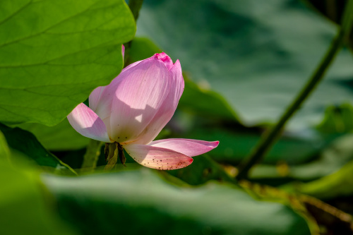 6月的大明湖,滿(mǎn)目蒼翠,荷田里已經(jīng)有荷花按捺不住嬌美綻放,也有粉嫩的荷花骨朵含苞待放,粉色的花朵和綠色的荷葉相映襯,別有一番風(fēng)味,成為夏日園區內一道靚麗的風(fēng)景線(xiàn)。