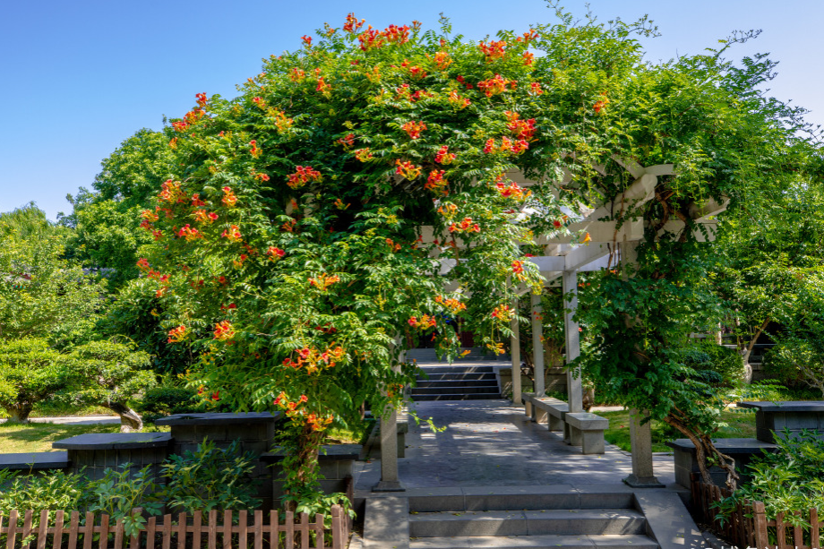 凌霄花不僅觀(guān)賞性強,還是一味傳統的中藥材,有涼血化瘀、行血祛風(fēng)、解毒消腫等功效。