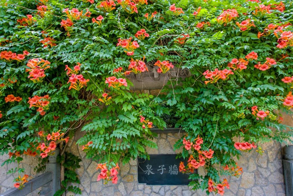 在大明湖、五龍潭、趵突泉、護城河景區都能看到它們的身影,成片的綠色藤蔓中,一朵朵凌霄花花枝招展,開(kāi)得熱烈奔放、美不勝收,傳遞出勃勃的生機與活力。