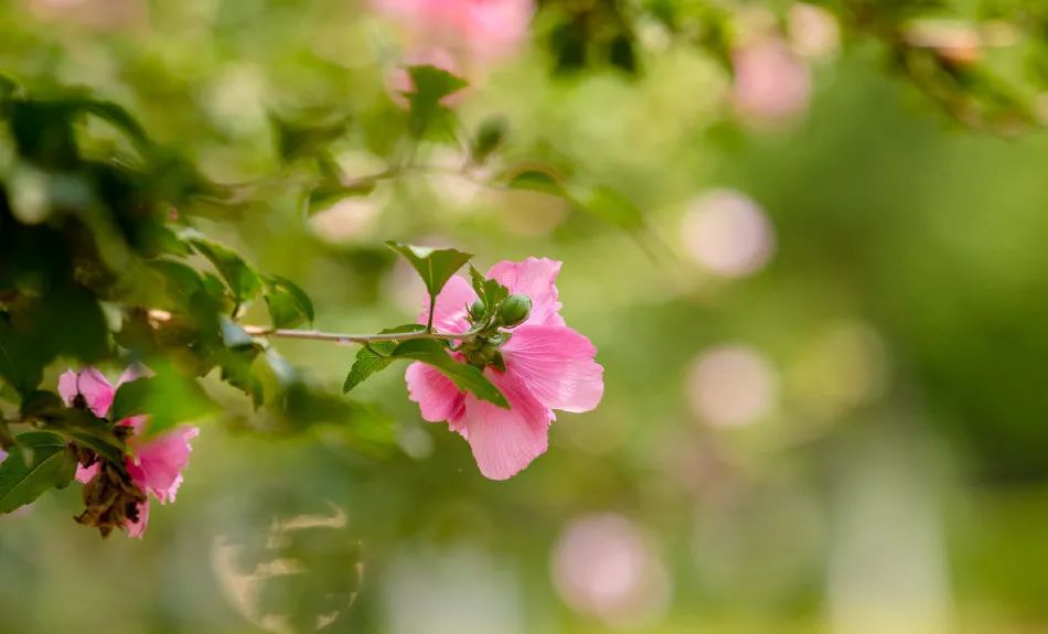 在大明湖景區就有不少木槿花,像穿著(zhù)家居服的小家碧玉,沒(méi)有那么多的嬌媚和妖艷,卻也兀自釋放著(zhù)芬芳,絢爛著(zhù)火熱的夏季。