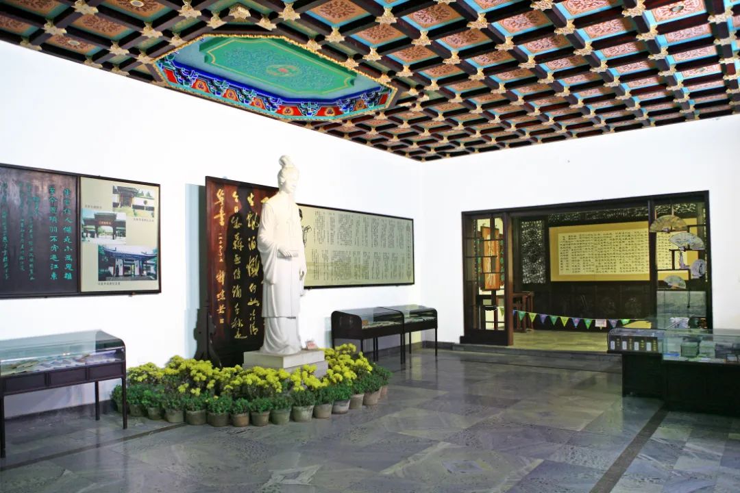 排列整齊的玻璃柜里,陳列著(zhù)李清照著(zhù)作的各種版本和后人研究李清照的專(zhuān)著(zhù)、期刊等。院內栽植以李清照詩(shī)詞意思配置的名貴花木。春夏秋冬四季皆景,生機盎然。