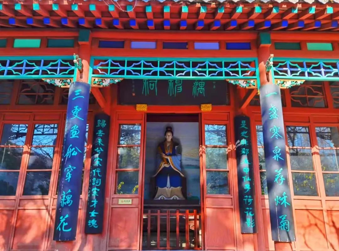 門(mén)口是濟南著(zhù)名文化學(xué)者徐北文先生所作的祠聯(lián):“是耶非耶,水中仙子荷花影;歸去來(lái)兮,宋代詞宗才女魂。”由此可知,“藕神”正是“詞宗才女”李清照。