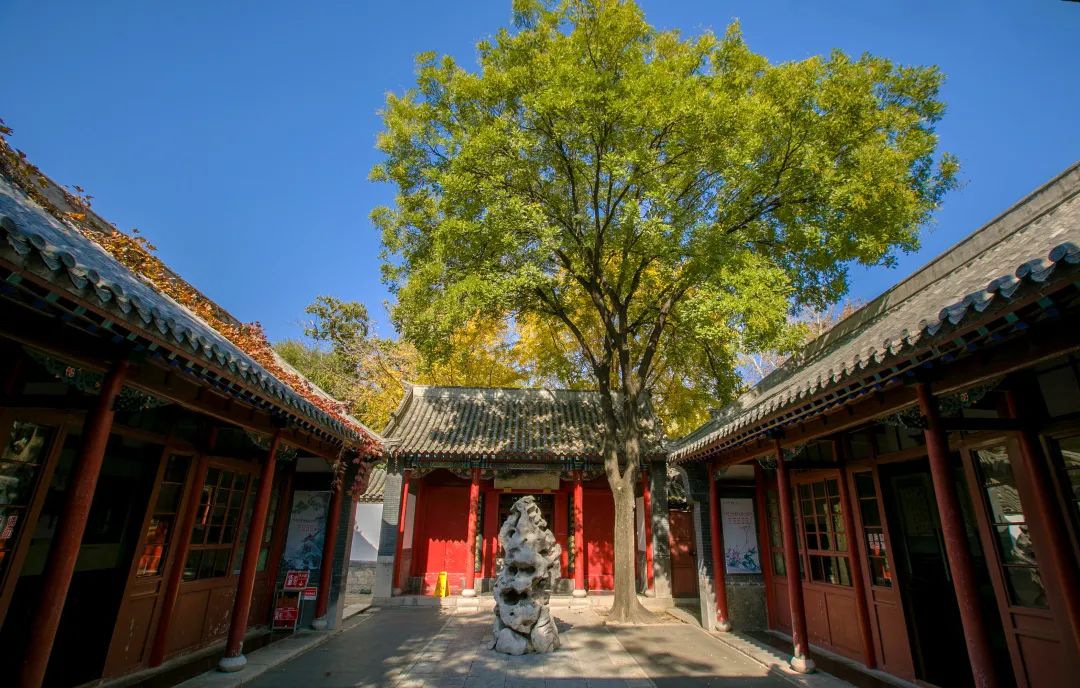 祠院面積約1400平方米,坐北朝南,由南向北三進(jìn)院落,建在一條中軸線(xiàn)上。進(jìn)了大門(mén),院內有一太湖石。旁有國槐郁郁,牡丹飄香。