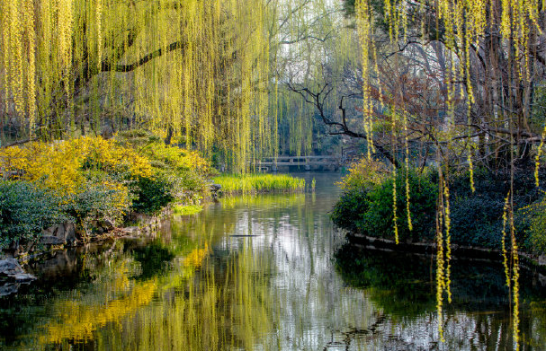 當屬次第發(fā)芽開(kāi)花的各色花木