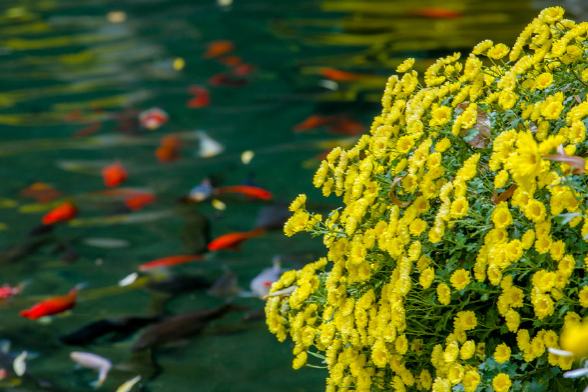 各種顏色點(diǎn)綴著(zhù)池畔泉邊