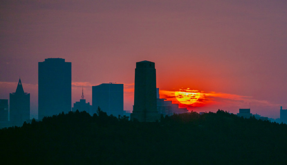 城市被璀璨的朝霞喚醒,滿(mǎn)天的霞光,與城市建筑勾畫(huà)出一幅美麗的畫(huà)卷,令人賞心悅目。