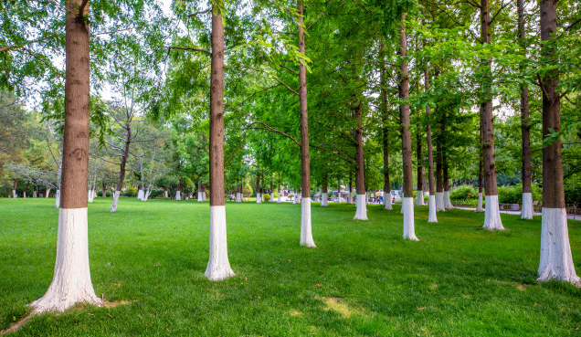 翠綠的竹林、高大的水杉,處處都是綠蔥蔥的樣子。