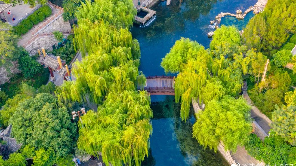 秋天的趵突泉公園里,清泉流瀑,各種樹(shù)木五彩斑斕,宛如一幅清新秀麗的山水畫(huà)。再到深秋,一條條柳絲從深綠染成了淺黃,猶如綢帶般輕柔,在清澈碧綠的泉水映襯下,更像一幅畫(huà),多姿多彩!