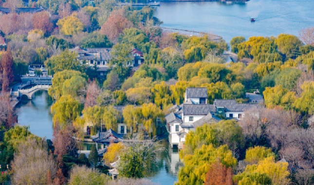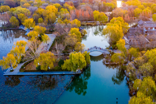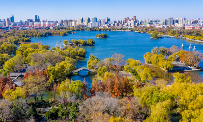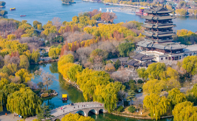 初冬的大明湖垂柳依舊綠意蔥蔥
