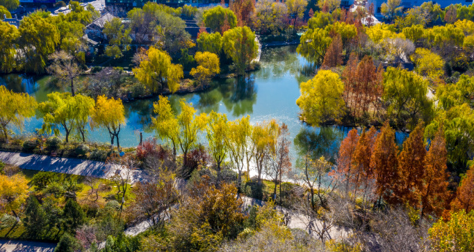 一起去打卡大明湖,登高望遠,感受濟南冬日里的爛漫與情懷。此時(shí),大明湖景區內還是秋色濃郁,秋葉絢爛、秋果累累,偶有秋花點(diǎn)綴,為游客奉上藍天彩葉凈水的美麗景色。