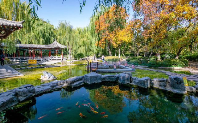 彩色的樹(shù)葉裝點(diǎn)著(zhù)大大的園子