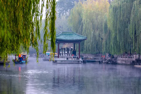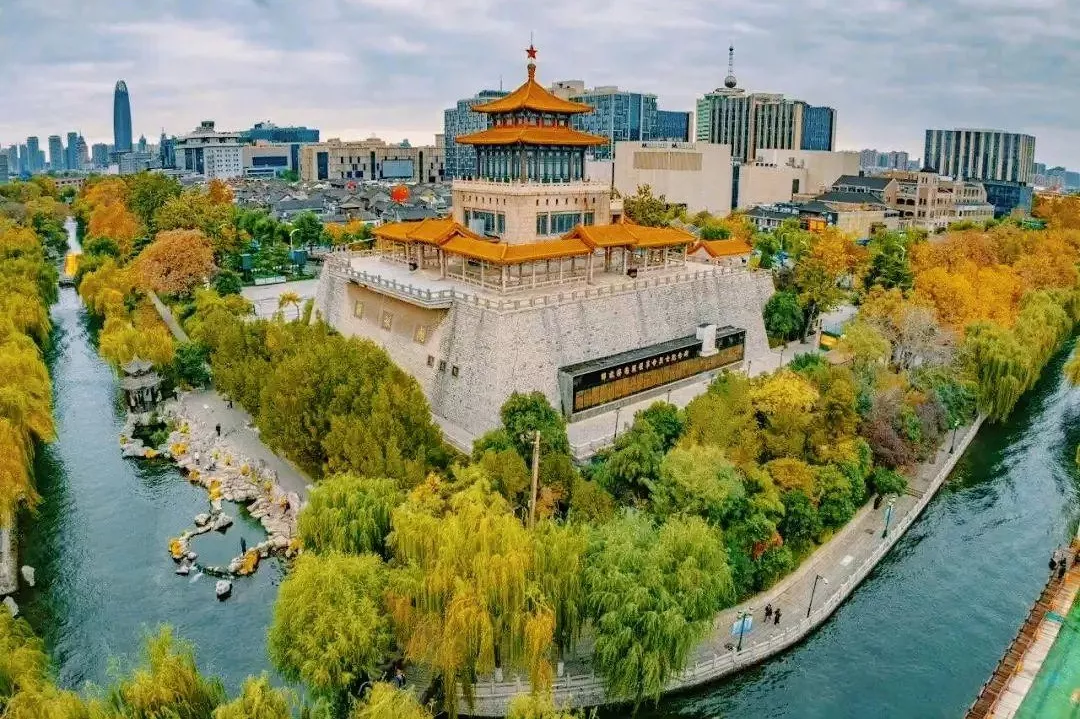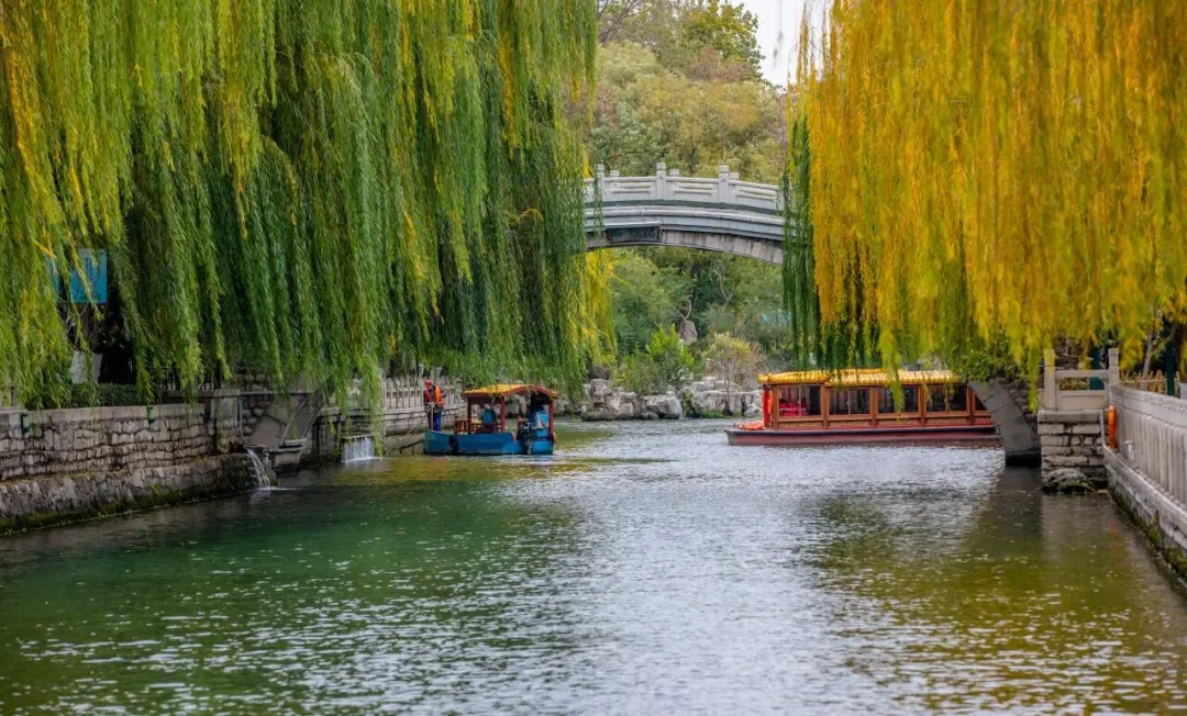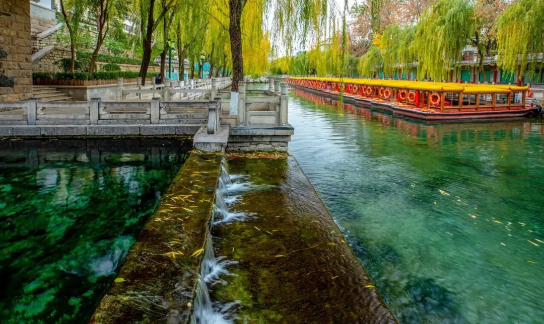 濟南護城河全長(cháng)6.9公里,是國內唯一河水全部由泉水匯流而成的護城河,一河連百景,河兩岸垂柳隨風(fēng)搖曳、群泉競涌。冬日里的護城河,真正賞景好去處。