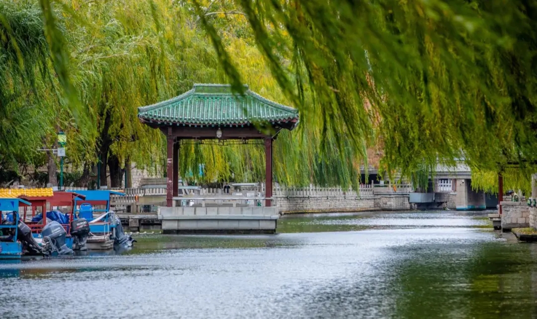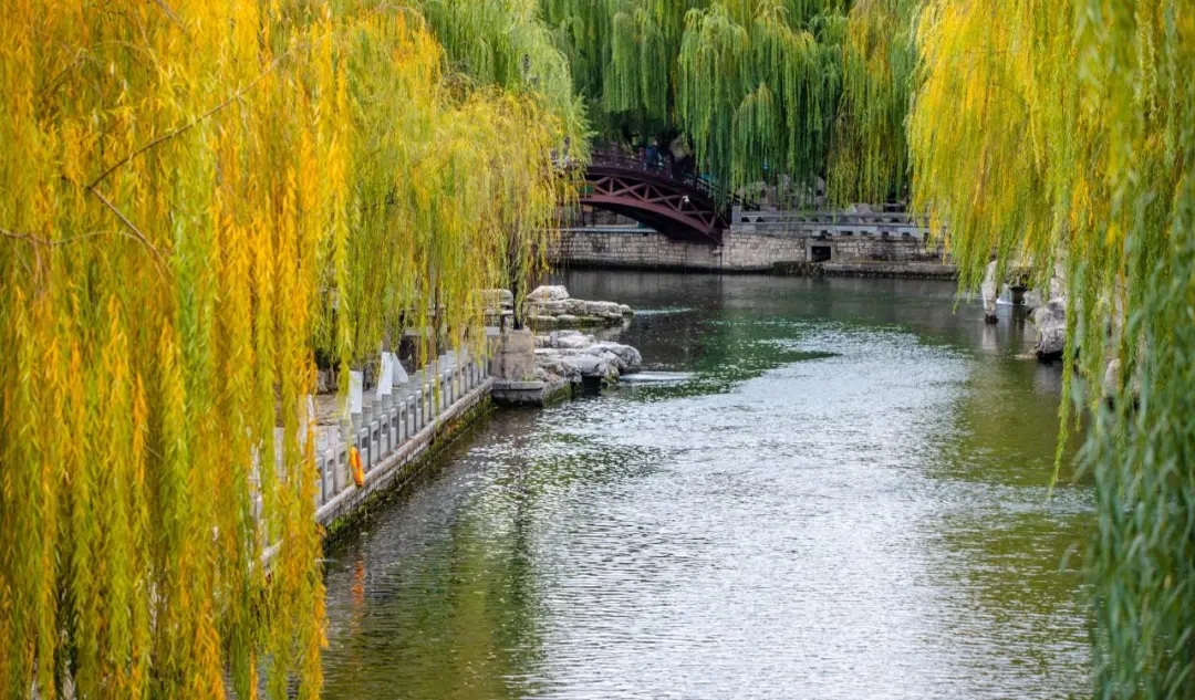 濟南護城河仿佛玉帶,環(huán)繞古城,清泉奔流,柳枝搖曳。陽(yáng)光映照之下,盡顯詩(shī)意之美,仿佛一秒就能入畫(huà)。