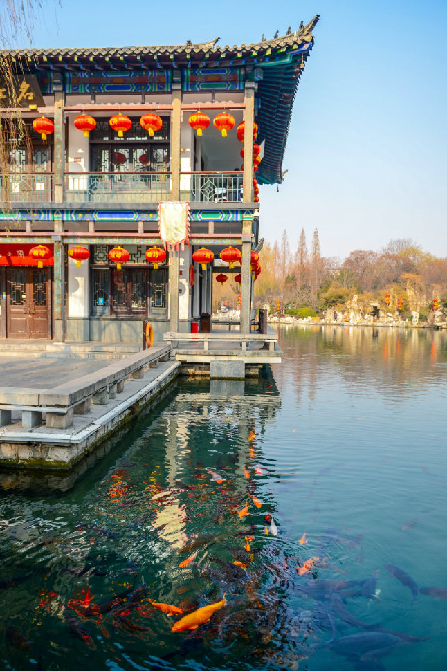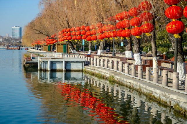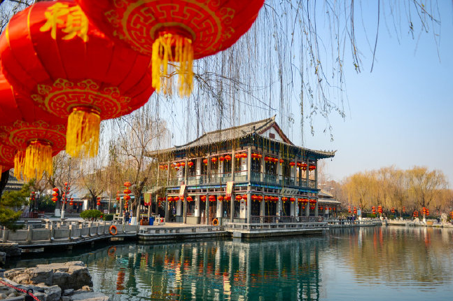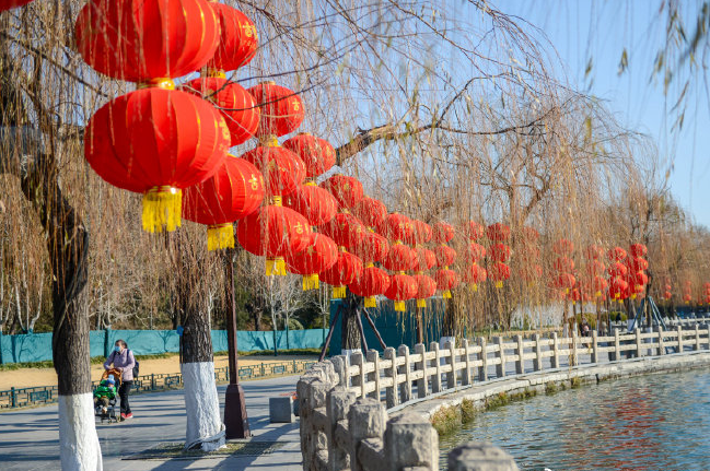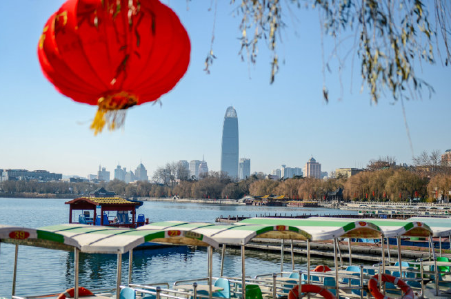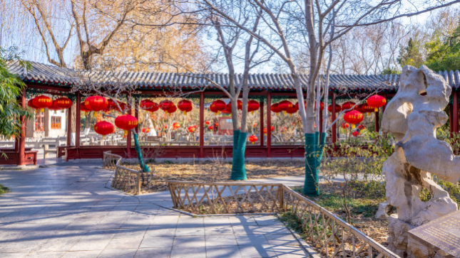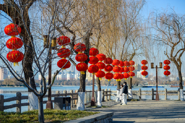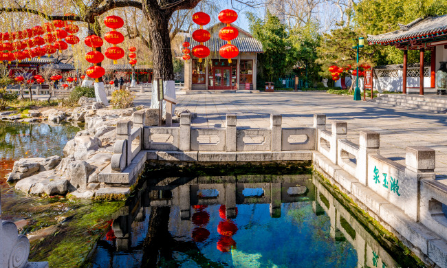 冬日里的濟南五龍潭景區,顏色依舊豐富多彩,游客們趁著(zhù)冬日暖陽(yáng)在這里賞景游玩,一串串大紅燈籠高高掛,給略顯冷清的公園增添了吉祥喜慶的色彩,也為即將到來(lái)的新年帶來(lái)了濃濃的暖意。