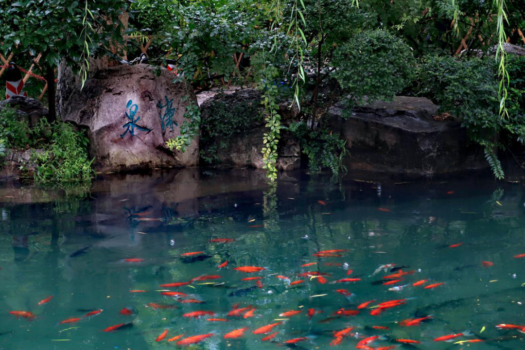 五龍潭園區內西北隅的濂泉,泉水平靜又清澈見(jiàn)底,雖沒(méi)有趵突泉“水涌若輪”的磅礴氣勢,但無(wú)數涓涓細流、串串珍珠不間斷地由池底諸多小孔中涌出,正合“中絕小水”之意。泉池上建有“濂廊”,廊中有楹聯(lián)一副:濂泉清明鑒廉仕,綠煙濃蔭惠黎民。