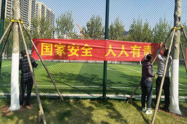 通過(guò)制作“國家安全 人人有責”宣傳條幅,懸掛在望岳康體公園項目醒目位置,營(yíng)造了良好的宣傳氛圍。