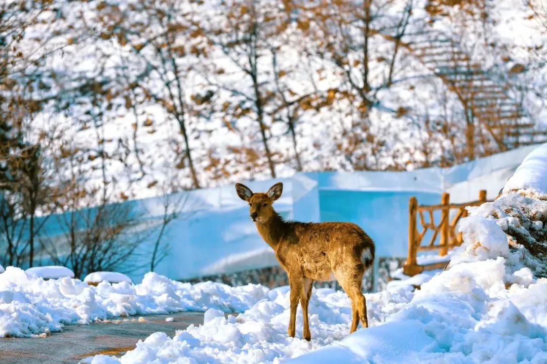 在這里,你可以遇見(jiàn)雪地精靈。東北“傻”狍子、梅花鹿、雪地松鼠、羊駝、駱駝、孔雀、鴕鳥(niǎo)、天鵝、荷蘭鼠……百余種小萌寵,親密互動(dòng)。