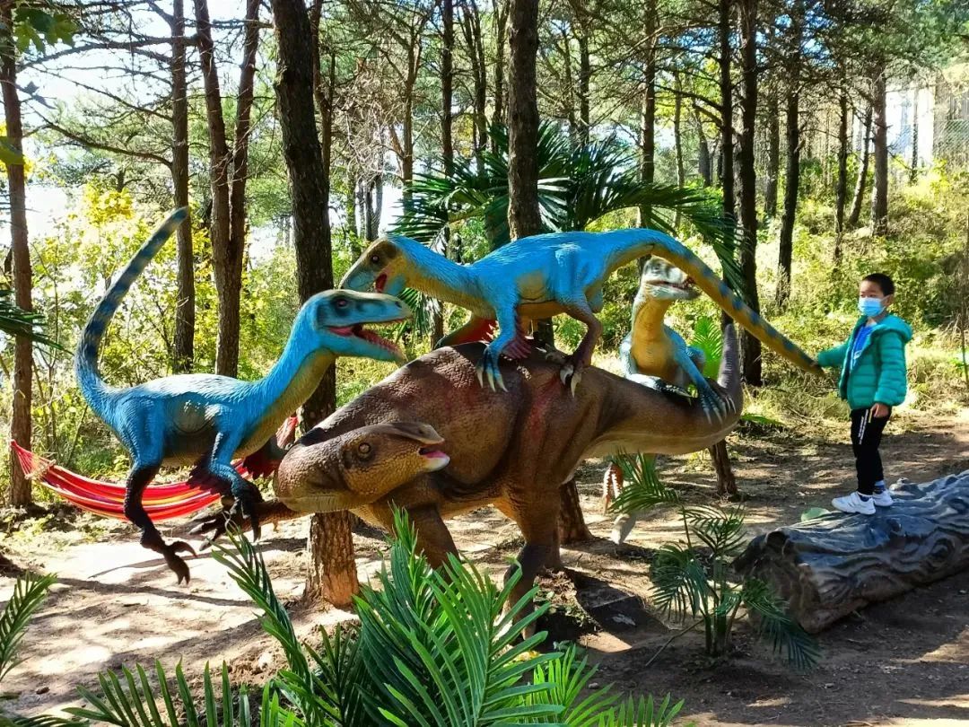 在這里,你可以探尋恐龍世界。霸王龍、三角龍、劍龍、翼龍、慈母龍、腫頭龍、棘龍、腕龍……一百多只恐龍,超逼真場(chǎng)景!與時(shí)代王者親密接觸,帶孩子來(lái)一次穿越時(shí)空的尖叫之旅。