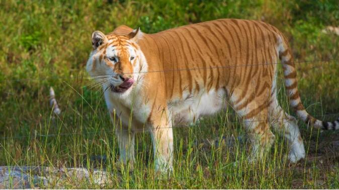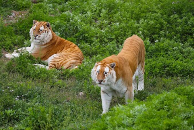 金虎數量極少,與之其他老虎的毛發(fā)摸起來(lái)扎手相比,金虎的毛發(fā)就十分柔軟舒服。金虎雖是孟加拉虎的正常變異,體型卻比原有的孟加拉虎還要大一些,但是還沒(méi)有達到東北虎的那種程度,只是稍微大一點(diǎn)點(diǎn)。孟加拉虎是世界上第二大的老虎品種,也是最兇猛的老虎品種。