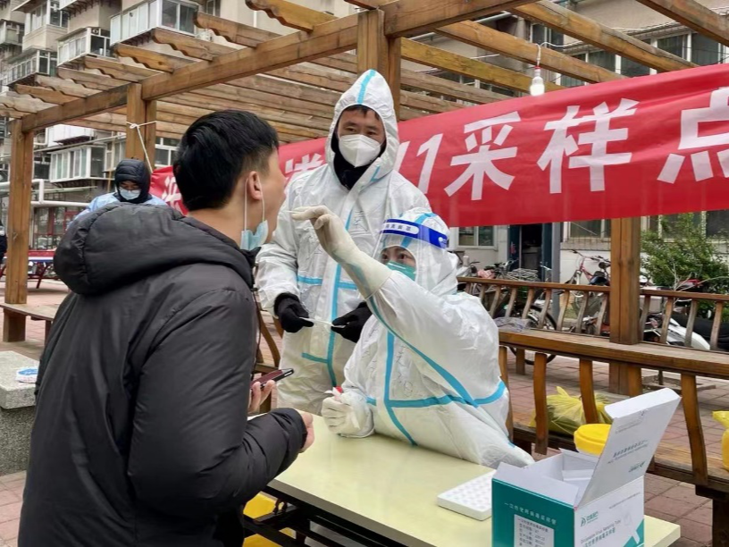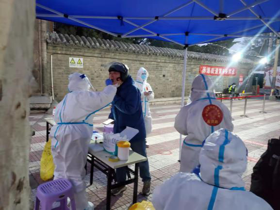 作為下沉社區服務(wù)唯一一名女同志,在接到通知后,來(lái)自文旅控股的孫瑞第一時(shí)間報名,向集團表達了強烈的服務(wù)意愿。孫瑞說(shuō),本次下沉北全福社區,協(xié)助全民開(kāi)展核酸檢測工作,在了解社區具體情況后得知,此次北全福社區核酸檢測對象包含周邊建筑施工人員、附近公司人員、以及小區居民等,人員情況較為復雜。由于初次接觸此類(lèi)工作,經(jīng)驗不足,多虧社區居委會(huì )工作人員的耐心指導才能更快地熟悉起來(lái),以便盡快投入到工作之中。此次工作,主要負責幫助百姓進(jìn)行核酸登記與檢查防疫信息、勸誡未戴口罩人員做好防護工作、針對不理解、情緒不滿(mǎn)的部分群眾,進(jìn)行耐心解釋?zhuān)瑺幦〉玫酱蠹业睦斫馀c支持。