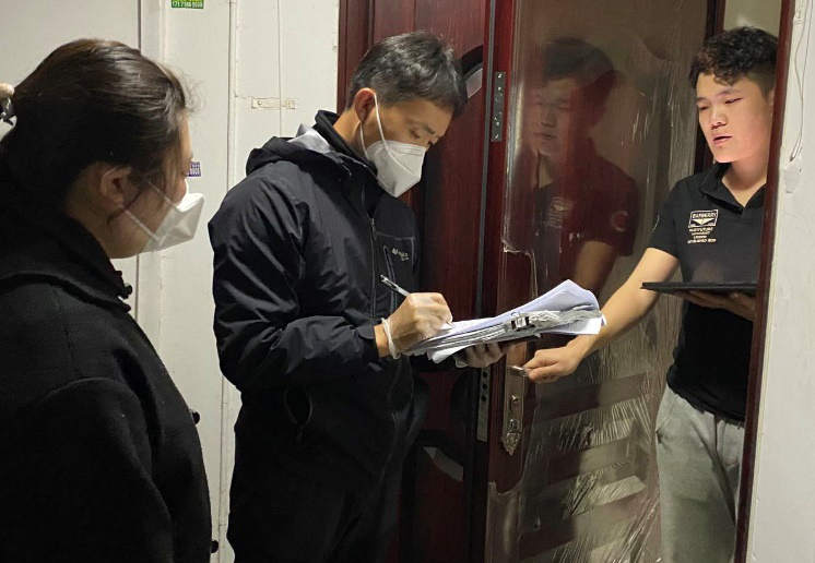 作為再次“出征”的人員,王斌同志對社區情況并不陌生。該社區地處市中心繁華地區,為開(kāi)放式無(wú)物業(yè)管理、少數民族占85%的老舊小區,具有情況復雜、管理難度大的特點(diǎn),面對困難,無(wú)論是核酸檢測、劃定密切接觸者封控區、管控區采取醫學(xué)隔離措施,還是環(huán)境消殺、信息篩查錄入、政策宣傳、來(lái)濟人員電話(huà)隨訪(fǎng)排查、防疫及生活物資搬運等各項工作,都有王斌和社區工作人員一道恪盡職守、勇于擔當、不畏辛勞忙碌的身影。