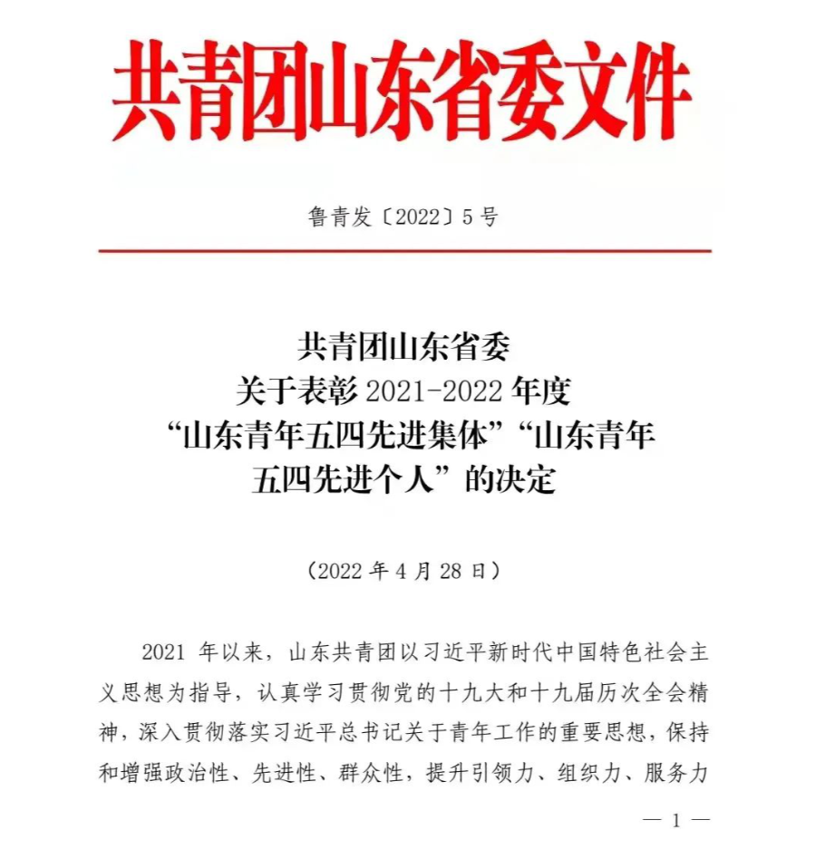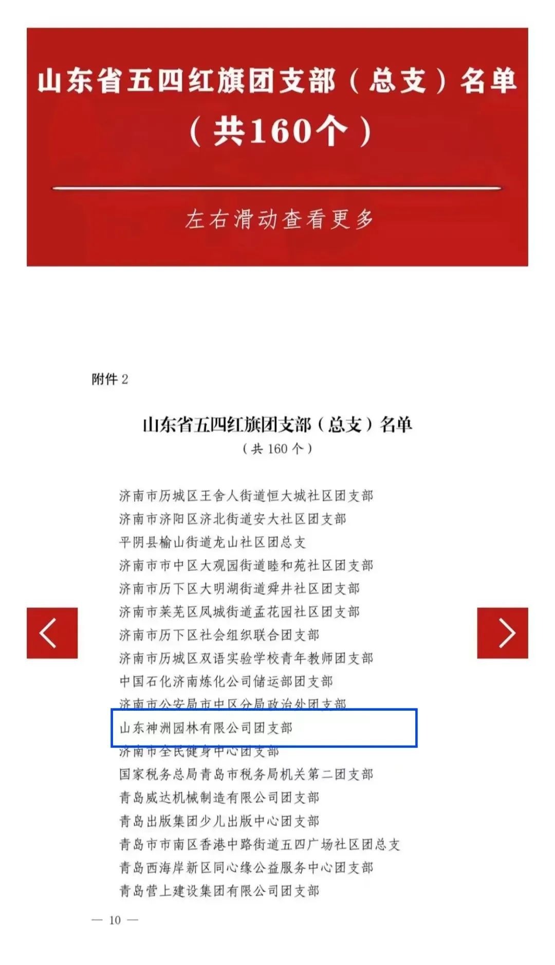 近日,共青團山東省委公布了《關(guān)于表彰2021-2022年度“山東青年五四先進(jìn)集體”“山東青年五四先進(jìn)個(gè)人”的決定》,山東神洲園林有限公司團支部榮獲“山東省五四紅旗團支部”榮譽(yù)稱(chēng)號。