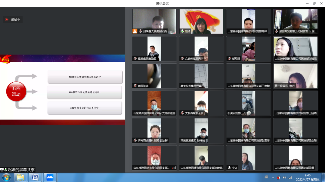 集團團委聯(lián)合濟南市團校共同舉辦“砥礪奮進(jìn)守初心 青春獻禮二十大”團員教育“八個(gè)一”系列活動(dòng)第一場(chǎng)線(xiàn)上培訓,文旅集團團員干部及團員青年共計136人通過(guò)線(xiàn)上或線(xiàn)下學(xué)習等形式參加了此次培訓,此次錄播課程將以支部為單位分7批次推廣學(xué)習,計劃培訓集團團員青年200余人次。“五四”青年節期間,組織團員青年開(kāi)展“青年大學(xué)習”第11期“爭做改革開(kāi)放的‘弄潮兒’”線(xiàn)上課程學(xué)習,團結帶領(lǐng)集團廣大團員青年堅定跟黨走、建功新征程。