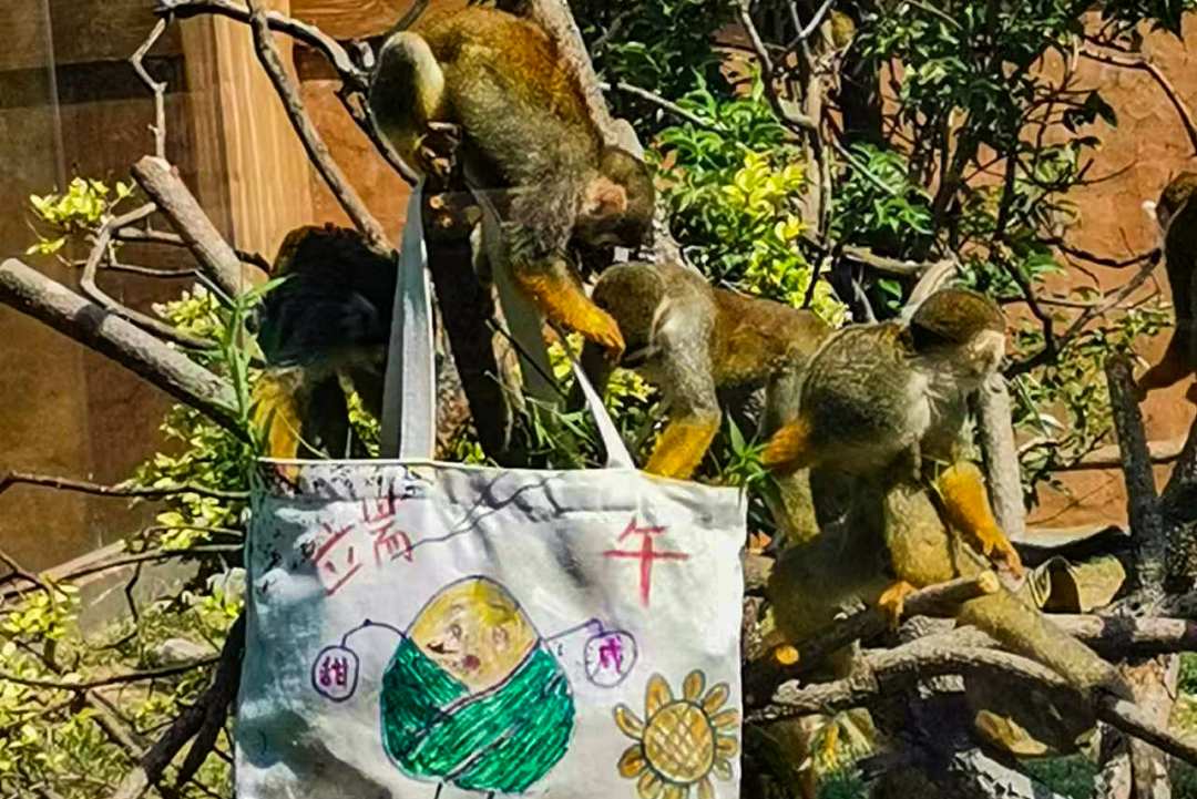 端午假期,濟南野生動(dòng)物世界為讓景區動(dòng)物小朋友們感受端午節日氣氛,動(dòng)物世界的“奶爸奶媽”們根據動(dòng)物們不同的飲食結構,準備好了粽葉、棉線(xiàn)、果蔬、肉泥等材料,為動(dòng)物們精心準備了“粽子”大餐。另外,景區推出的199元超值親情陪伴套票,含雪國圣境、馬戲表演二選一+投喂一次+五大專(zhuān)屬親子挑戰任務(wù),其中不少家庭選擇在景區步行區最后一站自己DIY一份濟野定制艾草香囊帶回家。