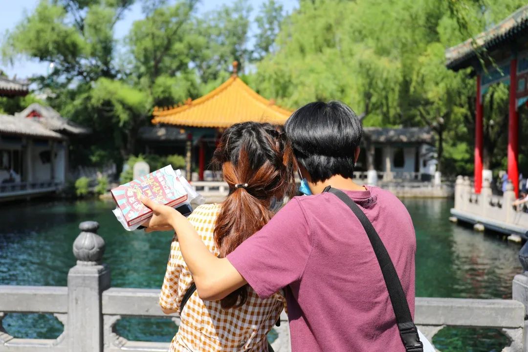 在趵突泉邊,不少游客手持景區文創(chuàng )雪糕,找好角度,與其造型原型——觀(guān)瀾亭同框拍下打卡照,記錄美好瞬間,一支文創(chuàng )雪糕在手,讓游玩的時(shí)候更添一份清涼和甜蜜。好看、好吃、解暑,還是高顏值拍照神器。