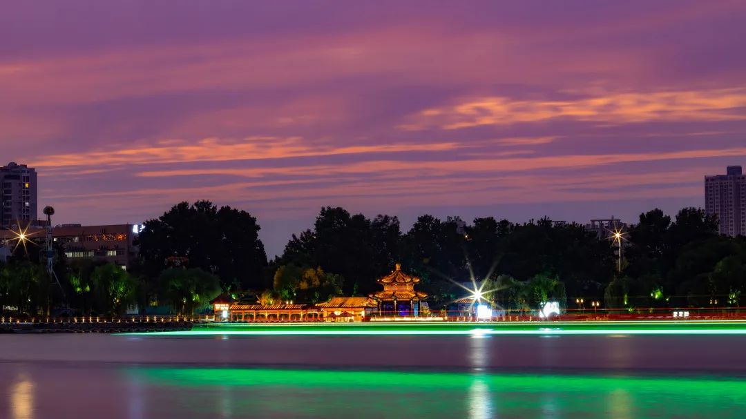 夏日的大明湖經(jīng)常會(huì )遇到晚霞