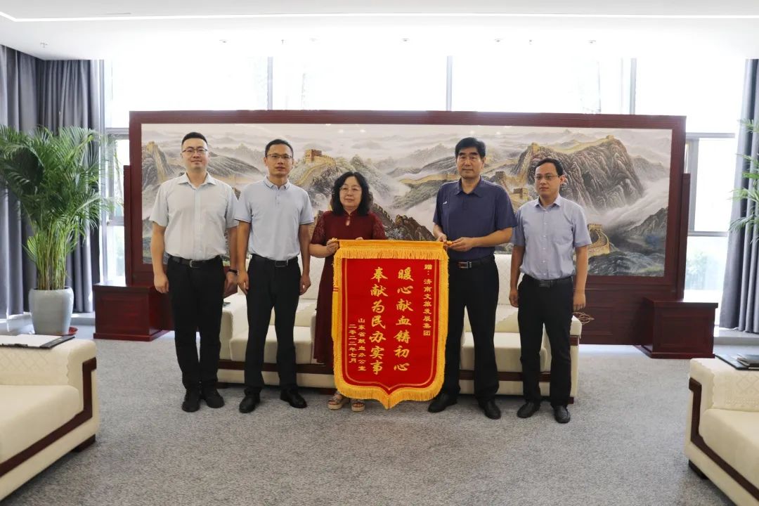 獻血活動(dòng)之前,山東省血液中心向濟南文旅集團頒發(fā)錦旗,對集團關(guān)心獻血公益事業(yè)所作的貢獻表示感謝。