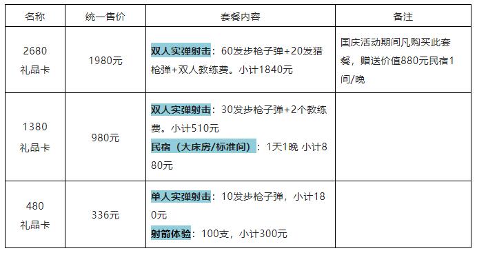 ①實(shí)彈射擊:小口徑5發(fā)+獵槍5發(fā)+單人1對1教練費