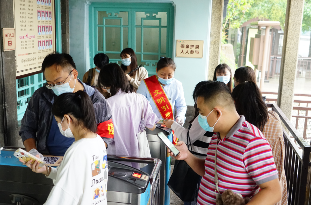 天下第一泉風(fēng)景區實(shí)行出入口分離,并嚴格落實(shí)“限量、預約、錯峰”要求,實(shí)行門(mén)票實(shí)名預約和線(xiàn)上售票制度,減少線(xiàn)下接觸。實(shí)時(shí)關(guān)注園區客流情況,嚴格按照承載量要求控制客流。