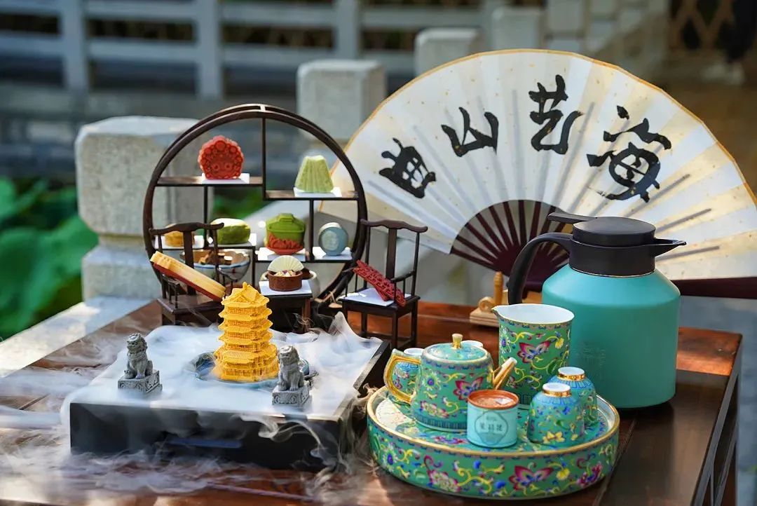 大明湖南豐戲樓推出國慶專(zhuān)場(chǎng)演出,相聲、快書(shū)、評書(shū),各種傳統說(shuō)唱藝術(shù)精彩紛呈,假期期間,每晚七點(diǎn)準時(shí)開(kāi)場(chǎng)。同時(shí)還推出49.9元演出限定套餐,包含馥郁芬芳的老濟南茉莉花茶和滋味醇厚的小獅子慕斯,陪您靜賞曲藝,弄花香滿(mǎn)衣。