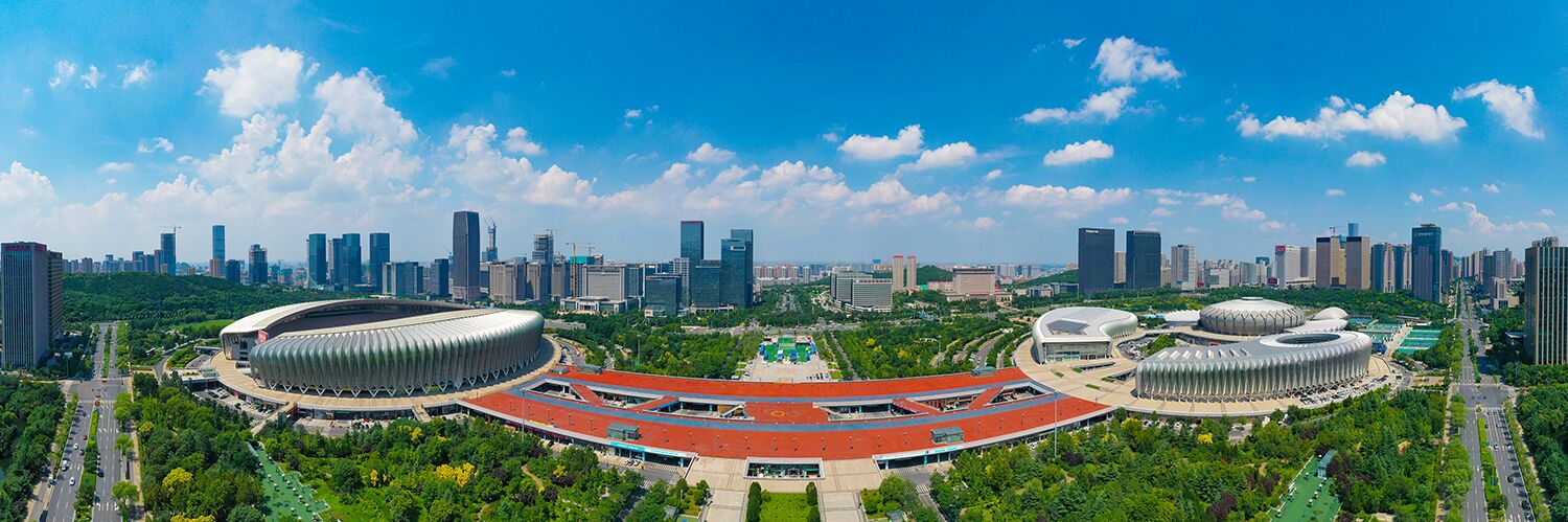 規劃設計總體呈現“三足鼎立”、“東荷西柳”布局,功能上滿(mǎn)足全國運動(dòng)會(huì )和世界單項體育賽事的要求,設計上成為具有濃郁地方特色的標志性建筑。