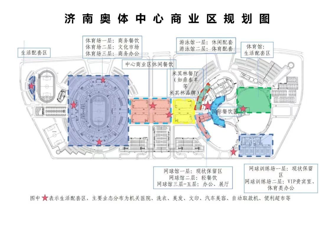 體育場(chǎng)一層規劃為商務(wù)餐飲區,待招商鋪100-2000㎡約9家;