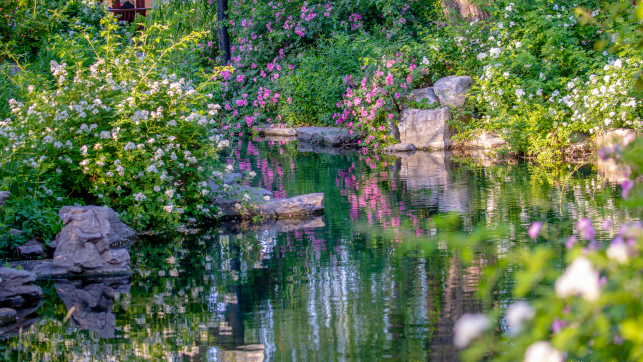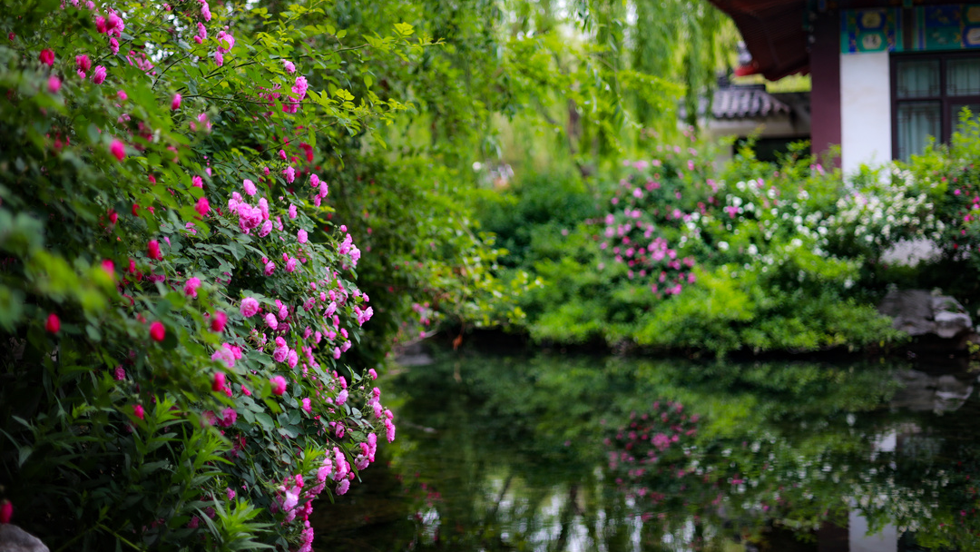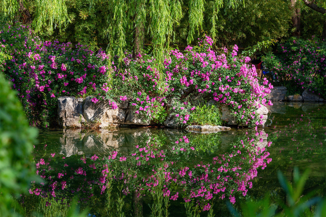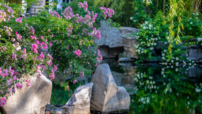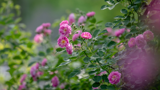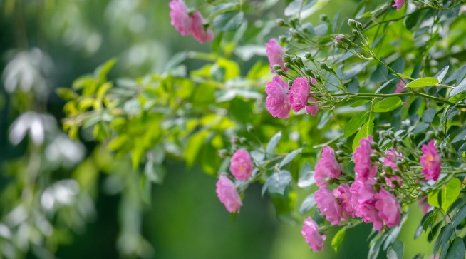 爭相開(kāi)放的薔薇花姹紫嫣紅一片
