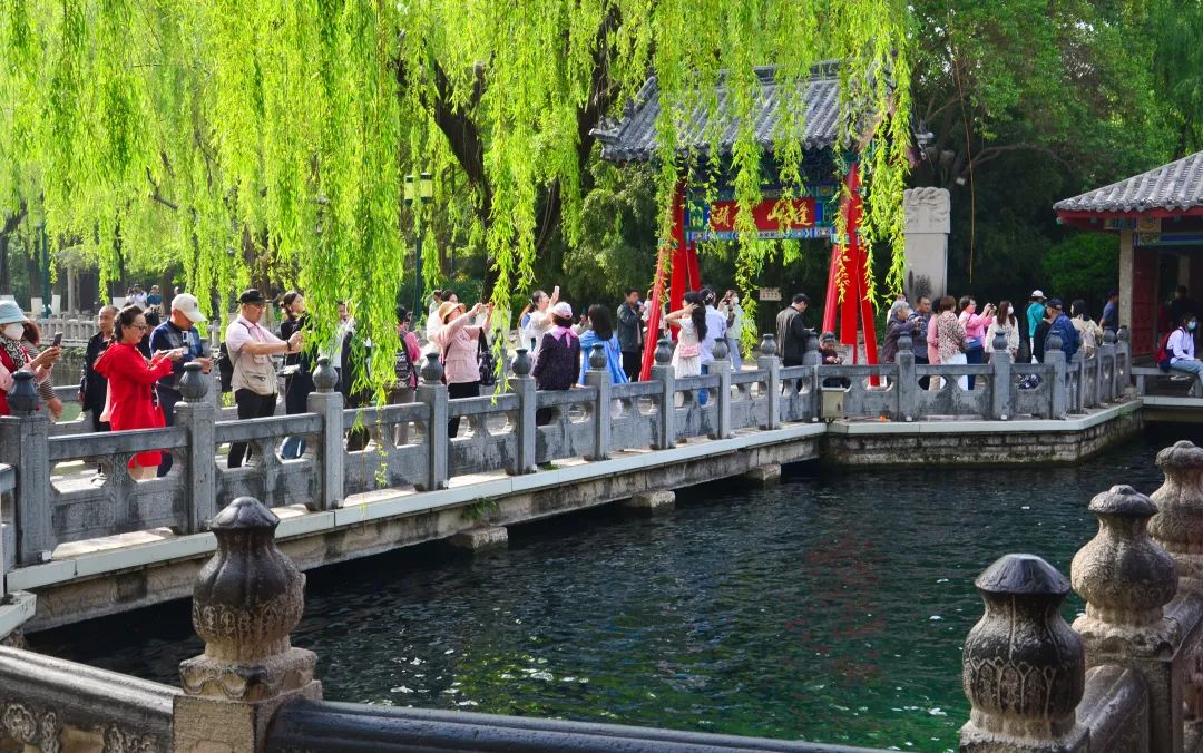 城中的護城河,與泉水相伴而生,清澈、靈秀,綠柳清波、風(fēng)雅無(wú)限,最能代表泉城特色,一水連百景,如一條玉帶環(huán)繞老城。來(lái)到黑虎泉邊,零距離接觸的泉水更是引得來(lái)人陣陣稱(chēng)贊。