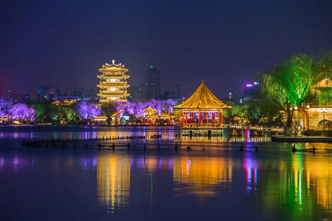 夜晚的天下第一泉景區在各色霓虹燈的點(diǎn)綴下,如夢(mèng)如幻,乘船至大明湖,置身湖中,觀(guān)明湖夜宴,品濟南府船宴。身旁流光溢彩的拱橋、古亭倒映在湖面上,如穿越時(shí)空一般,切身感受泉水的靈動(dòng)和光影的流轉。