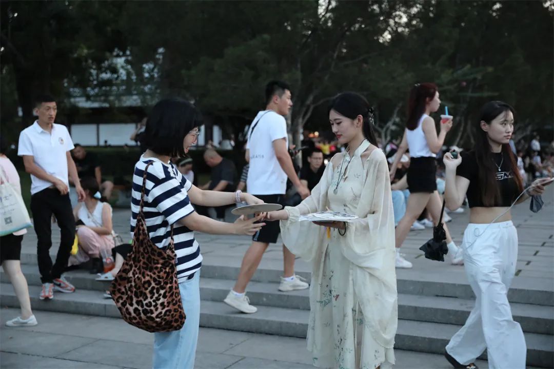 此外,市集還提供了投壺游戲、古詩(shī)詞接龍等豐富多樣的體驗互動(dòng)活動(dòng),現場(chǎng)還設置了超然樓創(chuàng )意打卡點(diǎn),可以在此打卡拍照。