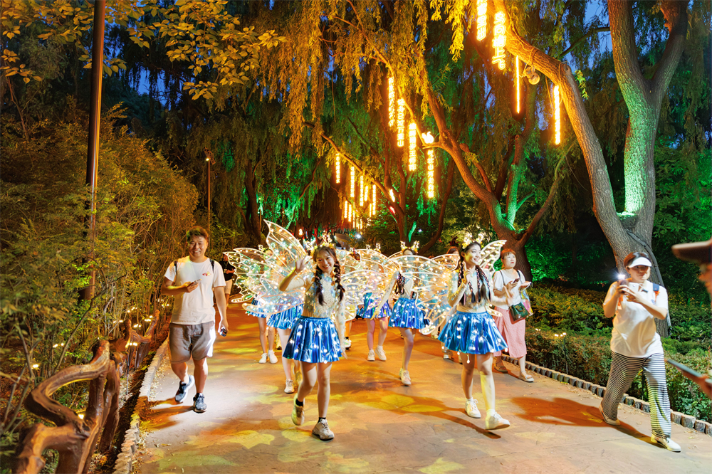 夜間動(dòng)物園活動(dòng)自6月30日至8月27日,期間每周五、周六、周日開(kāi)放,下午四點(diǎn)入場(chǎng)。燈光與科技的融合,光影與自然的探索打造夢(mèng)幻“光影森林”、動(dòng)物主題氛圍出片圣地的“胖胖動(dòng)物城”、精靈仙子歡快起舞,隨心舞動(dòng)的“巡游互動(dòng)”、激情夏日,浪漫親子的“泡泡派對”、887民謠濟南親情演繹的“美食演藝”、精彩絕倫的馬戲表演、燈火輝煌,娛樂(lè )無(wú)限“篝火晚會(huì )”等十五大主題夜游活動(dòng)輪番上演,游客不僅可以體驗多元化的動(dòng)物世界還可零距離感受夜間動(dòng)物的神奇奧秘,加上景區配套動(dòng)物“鹿”營(yíng)民宿區,在這個(gè)炎炎夏日,夜探動(dòng)物城,度過(guò)難忘的森林奇妙夜。
