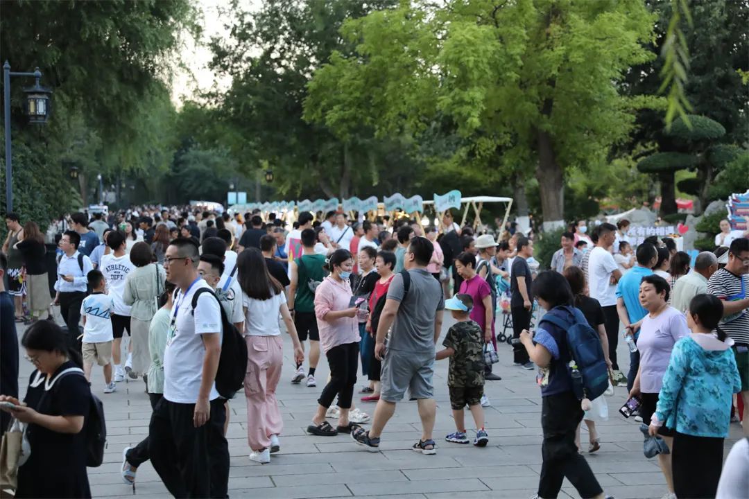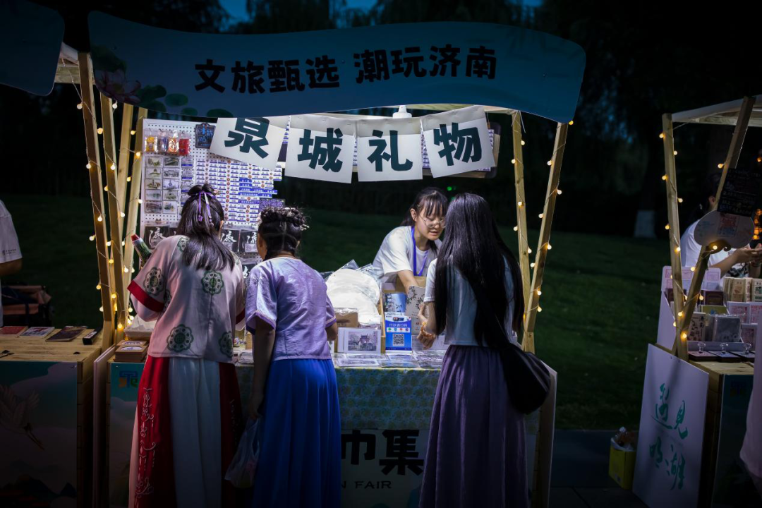 在大明湖超然樓廣場(chǎng)主游路,正在舉辦的“遇見(jiàn)明湖·超然市集”城市文創(chuàng )市集將持續至7月31日,工作日市集時(shí)間為17:00—21:30,雙休日市集時(shí)間為10:00—21:30。
