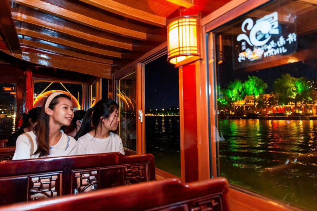 夕陽(yáng)西下,夜幕降臨,只局限于在大明湖畔漫步怎么能行,想沉浸式感受大明湖的風(fēng)景,那就選擇夜航大明湖吧!